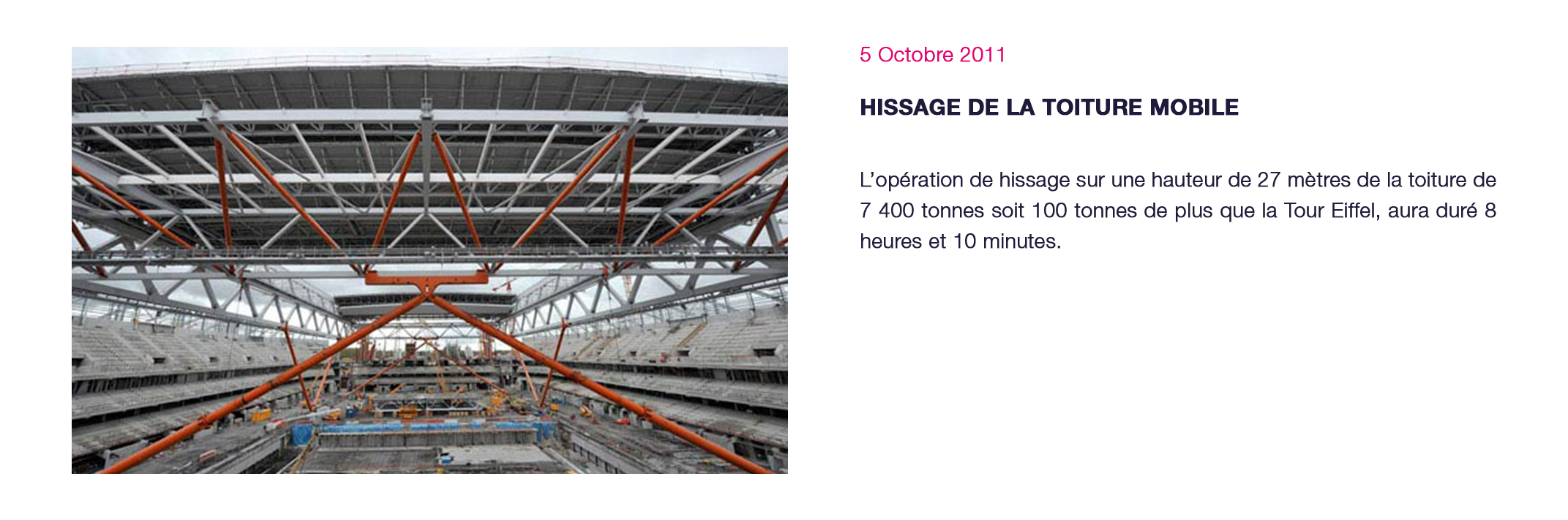 Événements majeurs : Matchs à domicile du LOSC club résident du Stade (championnat de Ligue 1 - coupe de France - coupe d’Europe), Test-match France – Argentine - novembre 2012, Demi-Finales du TOP14 - mai 2014, France-Jamaïque - dernier match de préparation à la Coupe du Monde de l’équipe de France - juin 2014